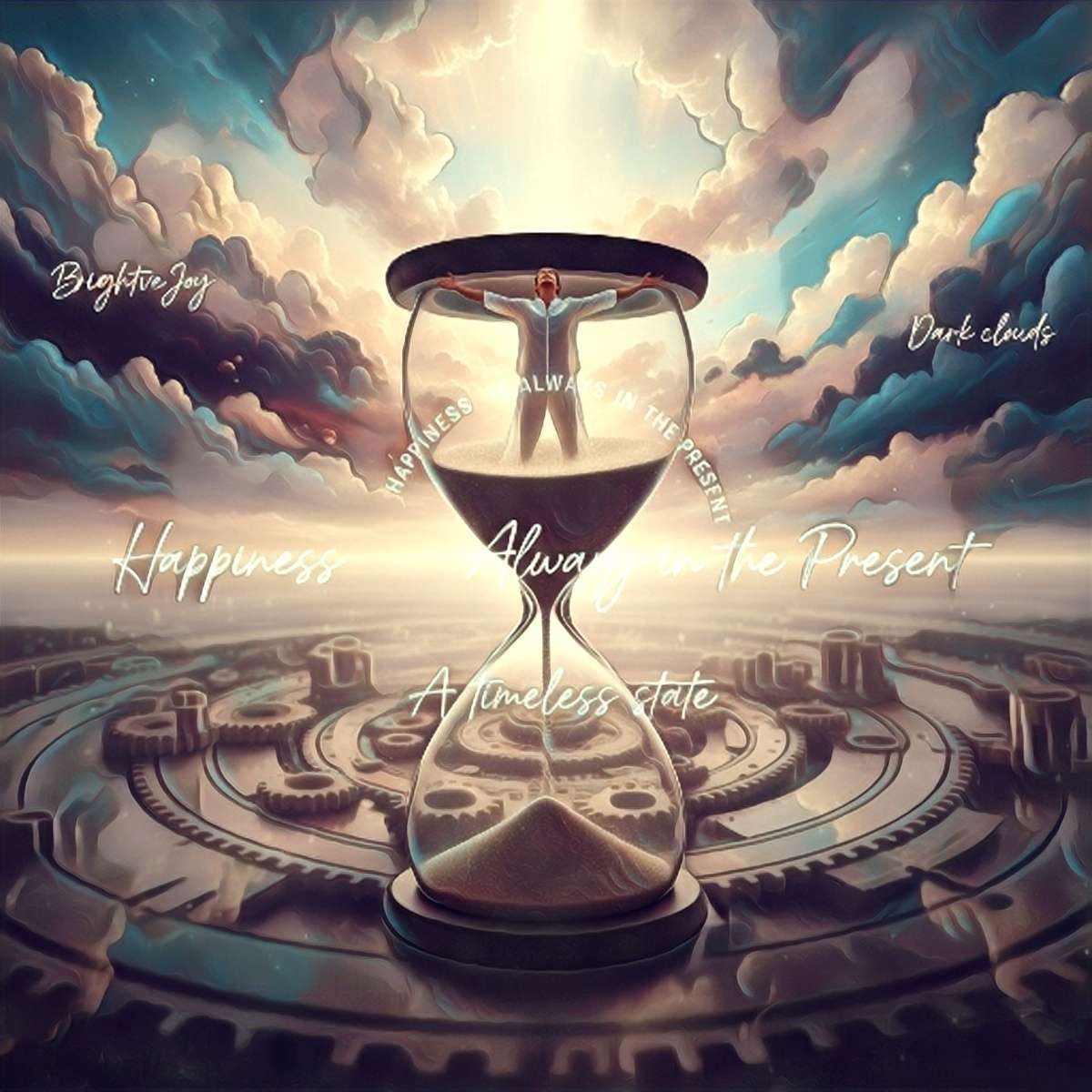 Happiness is not of yesterday, happiness is not product of time, happiness is always in the present a timeless state. If you have noticed that when you have ecstacy, a creative joy, a series of bright clouds surrounded by dark clouds in that moment there is no time there is only the immediate present.